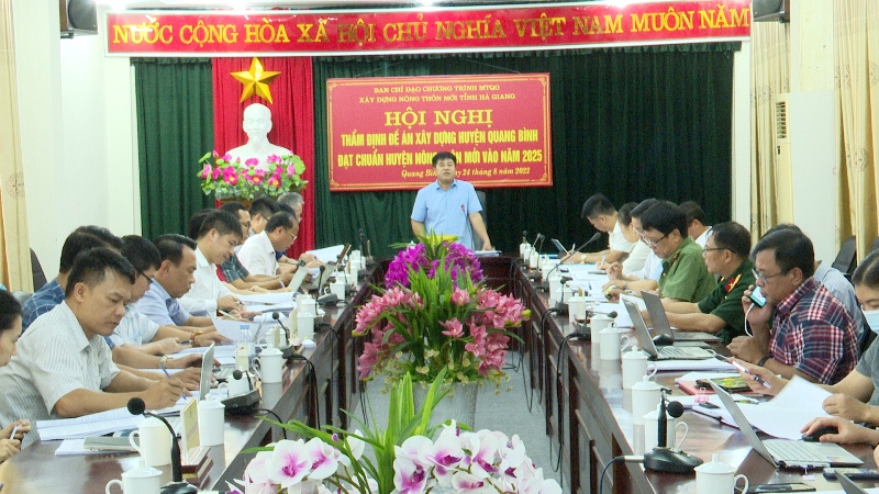 Phát biểu tại buổi làm việc, đồng chí Đỗ Tấn Sơn, Chánh Văn phòng điều phối NTM tỉnh yêu cầu Ban chỉ đạo NTM huyện tiếp thu các ý kiến về kết cấu, pháp lý đóng góp của các sở, ban ngành của tỉnh để hoàn thiện Đề án theo đúng lộ trình, thời gian hoàn thiện Đề án xong trước ngày 30/8 để Văn phòng NTM tỉnh trình UBND tỉnh tiến hành giao việc cho huyện; đối với các Sở, ban ngành của tỉnh tiếp tục hỗ trợ huyện theo thẩm quyền được phân công, bên cạnh đó Văn phòng NTM cũng đề nghị tỉnh cùng đồng tâm hiệp lực, ngoài nguồn vốn của tỉnh cần thu hút các nhà đầu tư giúp huyện Quang Bình hoàn thành tiến độ công nhận huyện đạt chuẩn NTM vào năm 2025.