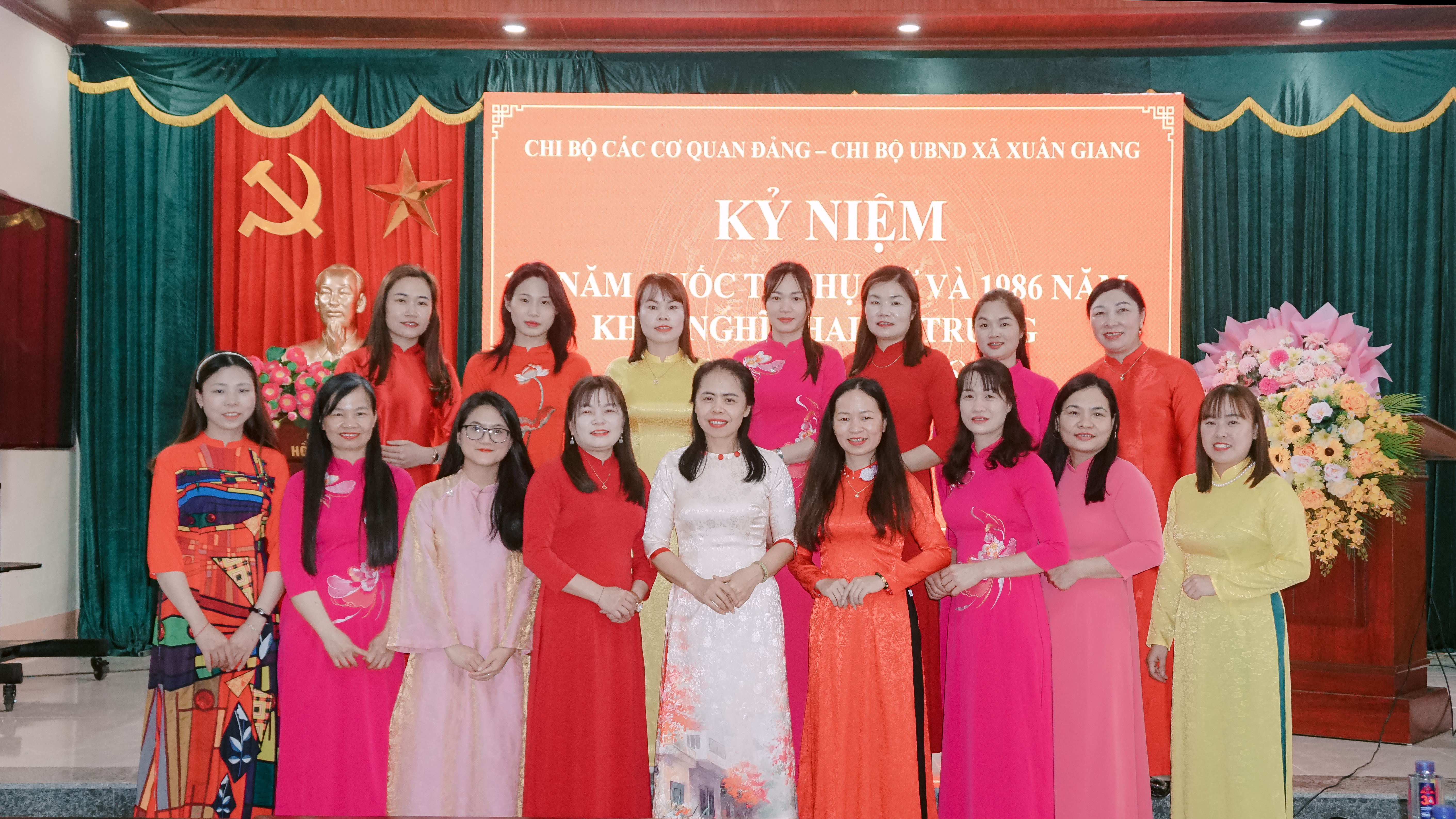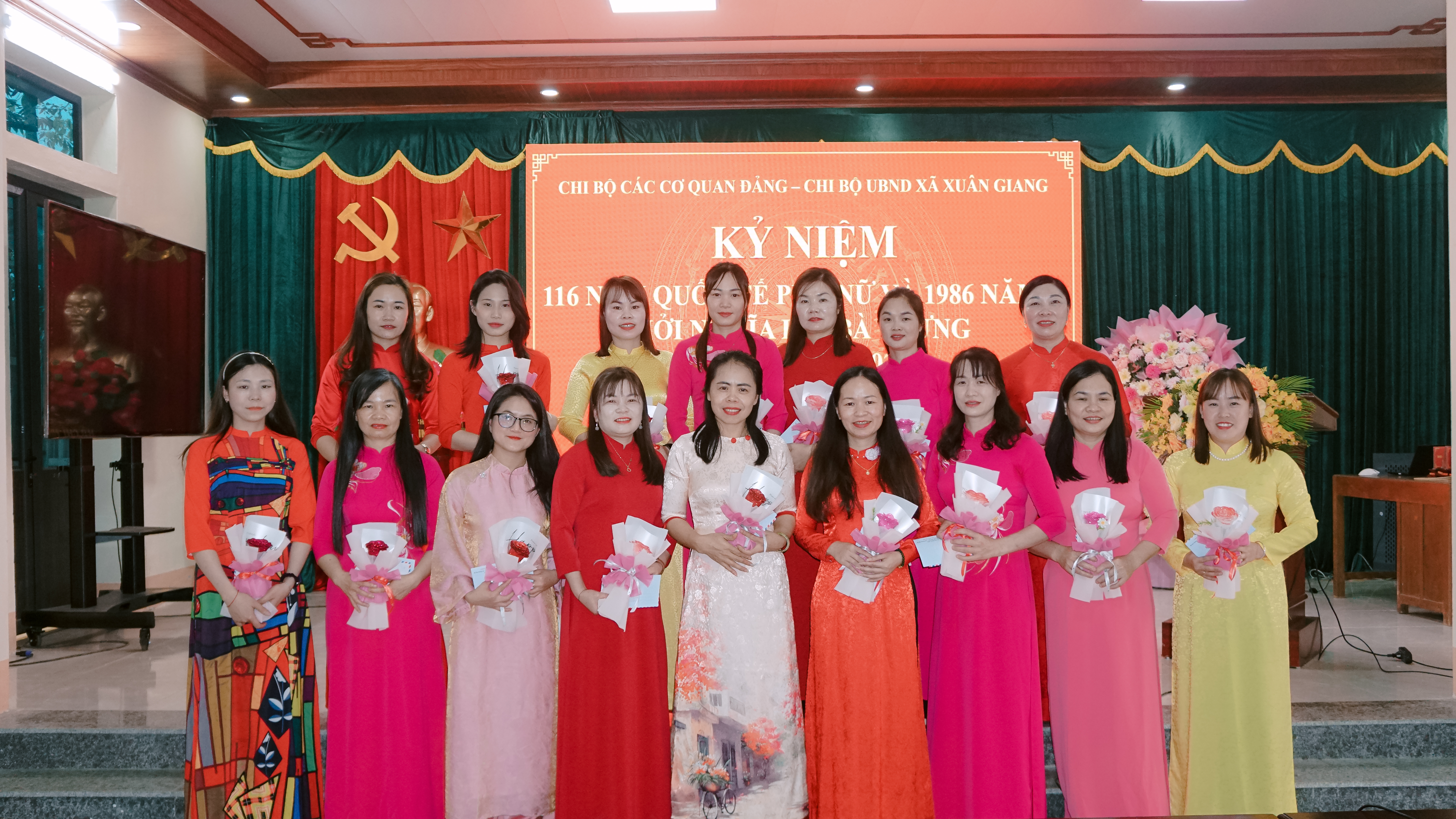 Tới dự và phát biểu tại buổi lễ, đồng chí Trần Trung Thành - Bí thư Đảng ủy, Chủ tịch HĐND xã Xuân Giang đã gửi những lời chúc mừng tốt đẹp nhất cùng những lẵng hoa tươi thắm đến toàn thể chị em phụ nữ. Đồng chí ghi nhận và biểu dương những đóng góp thiết thực của đội ngũ nữ cán bộ, đảng viên trong thời gian qua. Đồng chí Bí thư Đảng ủy mong muốn và tin tưởng rằng, trong thời gian tới, các chị em sẽ tiếp tục phát huy hơn nữa vai trò của người phụ nữ trong thời đại mới: "Tự tin, tự trọng, trung hậu, đảm đang". Đồng chí nhấn mạnh yêu cầu mỗi nữ cán bộ, công chức cần chủ động tăng cường rèn luyện, không ngừng học hỏi để nâng cao trình độ chuyên môn, nghiệp vụ, đáp ứng yêu cầu công việc ngày càng cao.