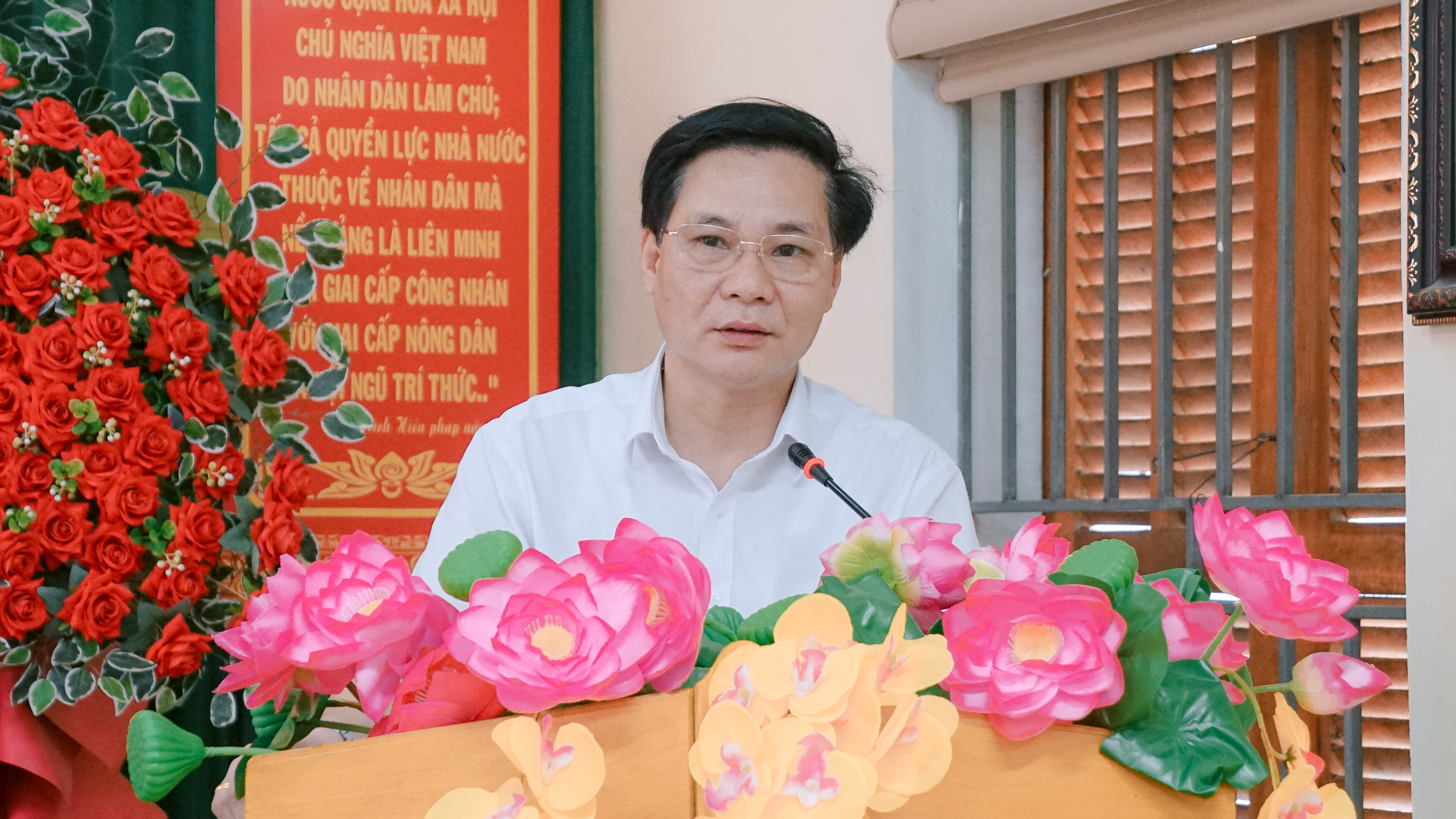 Đồng chí Trần Trung Thành, Bí thư Đảng ủy, Chủ tịch HĐND xã phát biểu tại buổi sinh hoạt