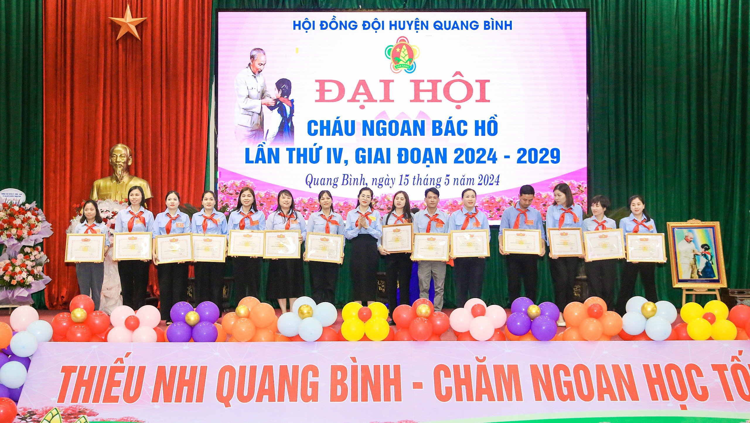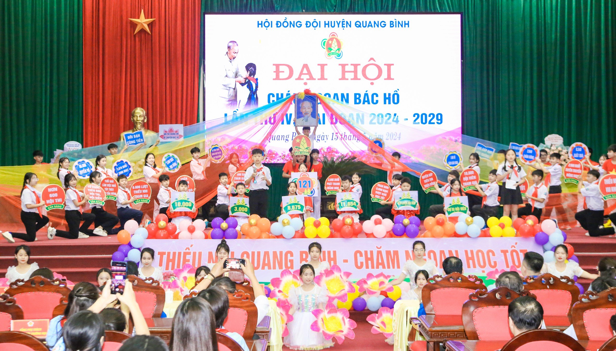 Đại hội đã tuyên dương 121 em thiếu niên, nhi đồng đạt những thành tích tiêu biểu, xuất sắc trong hoạt động Đội giai đoạn 2019 - 2024. Qua đó, khích lệ các em ra sức thi đua học tập, rèn luyện để xứng đáng là con ngoan, trò giỏi, đội viên tốt, cháu ngoan Bác Hồ và duy trì hiệu quả các phong trào, hoạt động của Đội, xây dựng tổ chức Đội Thiếu niên Tiền Phong Hồ Chí Minh ngày càng vững mạnh trong những năm tiếp theo. Nhân dịp này UBND huyện Quang Bình đã tặng Giấy khen cho 3 tập thể và 5 cá nhân; Hội đồng đội huyện cũng đã trao giấy khen cho 10 tập thể 15 cá nhân có thành tích xuất sắc trong công tác đội và phong trào thiếu nhi giai đoạn 2019 – 2024.