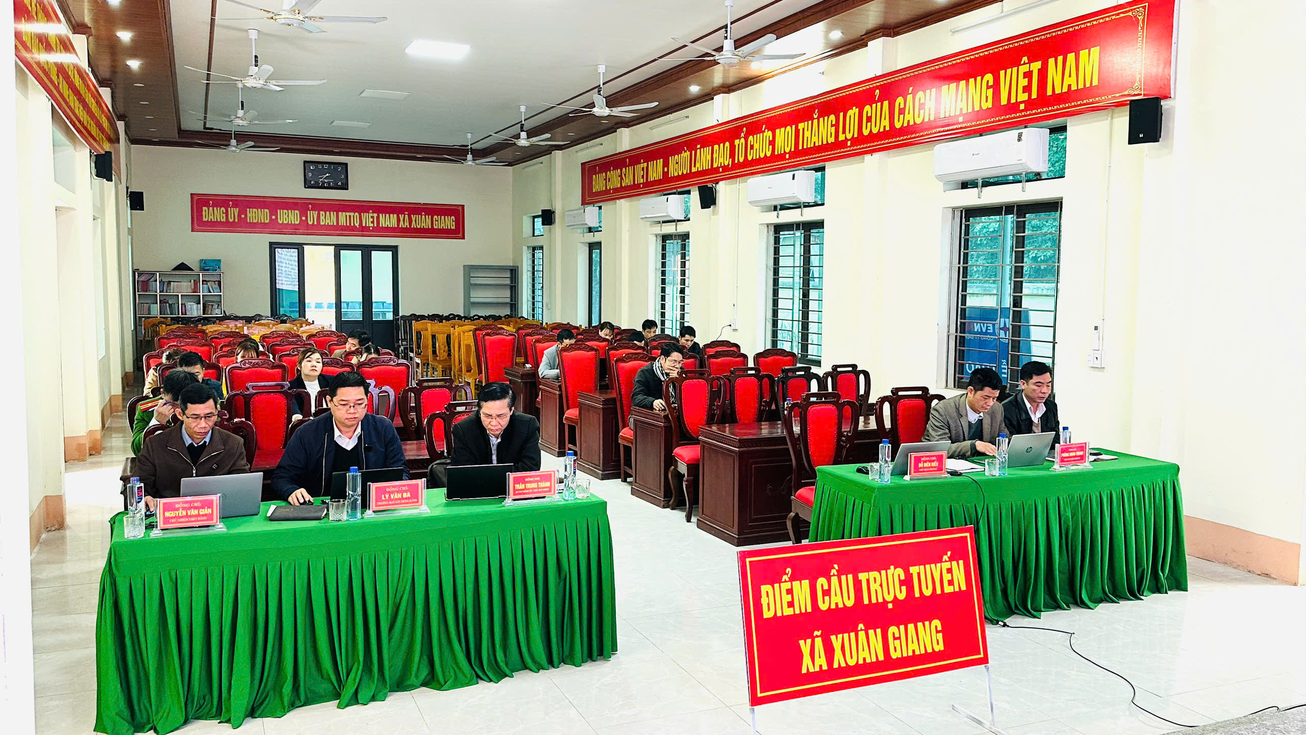 Hình ảnh tham dự hội nghị trực tuyến hướng dẫn nghiệp vụ công tác bầu cử ĐBQH khóa XVI và ĐBHĐND các cấp nhiệm kỳ 2026 - 2031 tại điểm cầu xã Xuân Giang