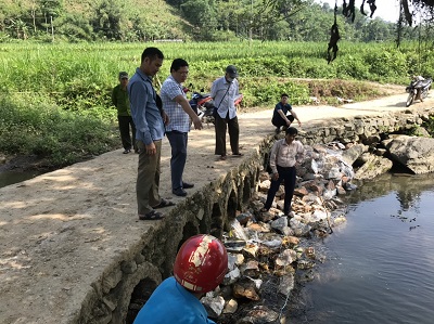 Ảnh các đồng chí lãnh đạo xã và ban quản lý thôn Quyền khảo sát các đầu điểm dự kiến làm bê tông năm 2024