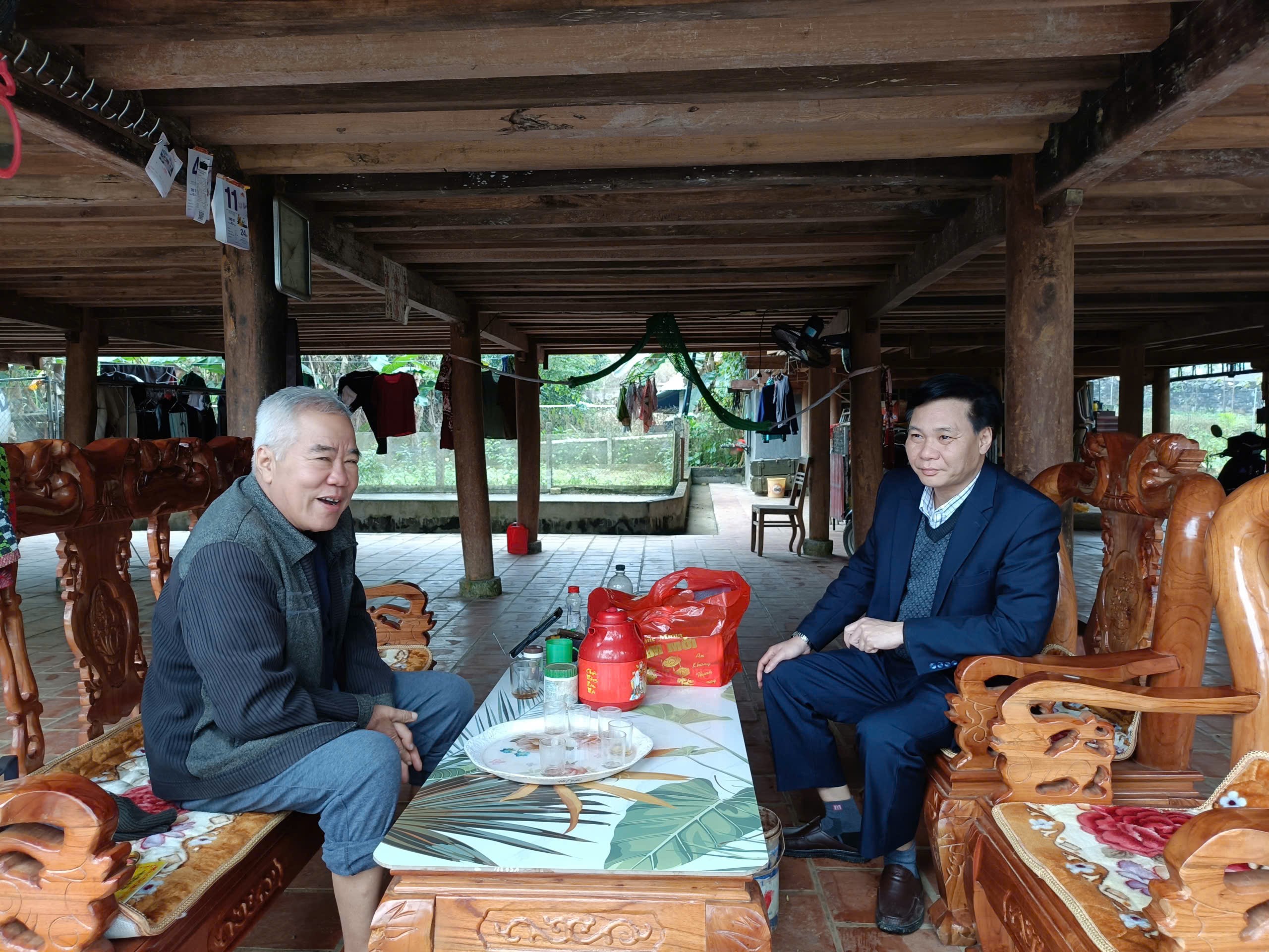 Đồng chí Trần Trung Thành - Bí thư Đảng ủy, Chủ tịch HĐND xã đến thăm hỏi, tặng quà đồng chí Hoàng – Đế, Nguyên Phó Giám đốc, Sở nông nghiệp tỉnh.