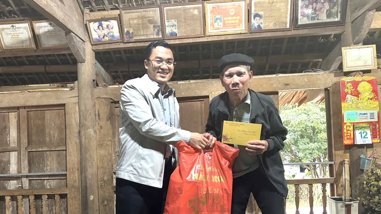 Đồng chí Phùng Minh Thanh - Ủy viên Ban Thường vụ Đảng ủy, Phó Chủ tịch UBND xã Xuân Giang thăm hỏi, tặng quà các gia đình người có công với cách mạng, thân nhân liệt sĩ trên địa bàn nhân dịp Tết nguyên đán Bính Ngọ 2026