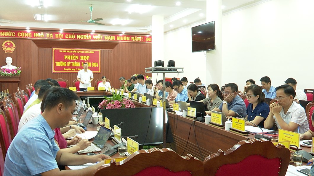 Qua nghe các báo cáo và các đại biểu tham gia thảo luận tại phiên họp, lãnh đạo UBND huyện yêu cầu trong thời gian tới Ngành Giáo dục - Đào tạo chỉ đạo tốt công tác chuẩn bị các điều kiện tổ chức Kỳ thi tốt nghiệp THPT năm 2024 bảo đảm an toàn tuyệt đối. Các ngành, các xã tập trung chỉ đạo quyết liệt kế hoạch thu ngân sách trên địa bàn, xây dựng kế hoạch chi tiết, quyết tâm thực hiện hoàn thành các tiêu chí xã NTM, xã NTM nâng cao, huyện nông thôn mới năm 2025. Tập trung thực hiện kế hoạch bán đấu giá quyền sử dụng đất; tháo gỡ khó khăn, vướng mắc trong công tác bồi thường giải phóng mặt bằng các công trình, dự án tên địa bàn huyện. Chỉ đạo chuẩn bị tốt các điều kiện tổ chức thành công diễn tập chiến đấu trong khu vực phòng thủ năm 2024 tại các xã theo kế hoạch. Vận động nhân dân tập trung thu hoạch các loại cây trồng vụ Xuân và chuẩn bị các điều kiện sản xuất vụ Mùa. Xây dựng và nhân rộng các mô hình ứng dụng khoa học công nghệ cao trong sản xuất nông lâm nghiệp, phát triển các sản phẩm đặc trưng, OCOP; phát triển nông nghiệp gắn với du lịch. Tiếp tục đẩy mạnh kế hoạch trồng rừng; công tác tuần tra, quản lý, bảo vệ rừng, phòng cháy chữa cháy rừng. Duy trì thực hiện phong trào Ngày thứ 7, Chủ nhật vì nông thôn mới. Chủ động công tác phòng chống thiên tai theo phương châm 4 tại chỗ. Đẩy mạnh công tác cải cách hành chính, giải quyết thủ tục hành chính trên môi trường điện tử, làm tốt công tác chăm sóc sức khoẻ cho nhân dân, các chế độ chính sách được Nhà nước ưu đãi và tăng cường kiểm tra, giám sát công trình, làm tốt công tác đảm bảo ANTT, ATGT trên địa bàn toàn huyện.