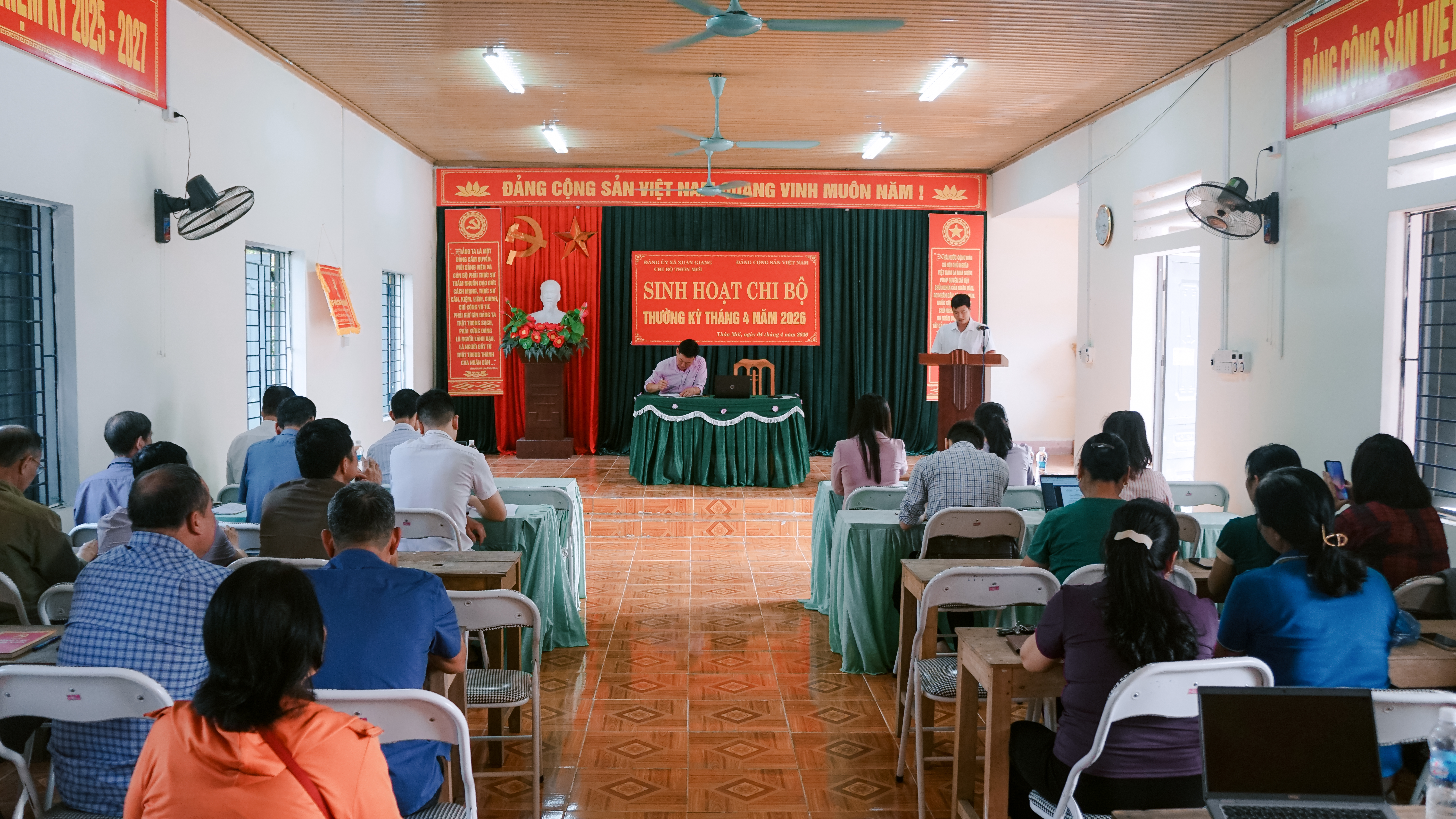 Toàn cảnh buổi sinh hoạt chi bộ thường kỳ tháng 4 năm 2026 của chi bộ thôn Mới