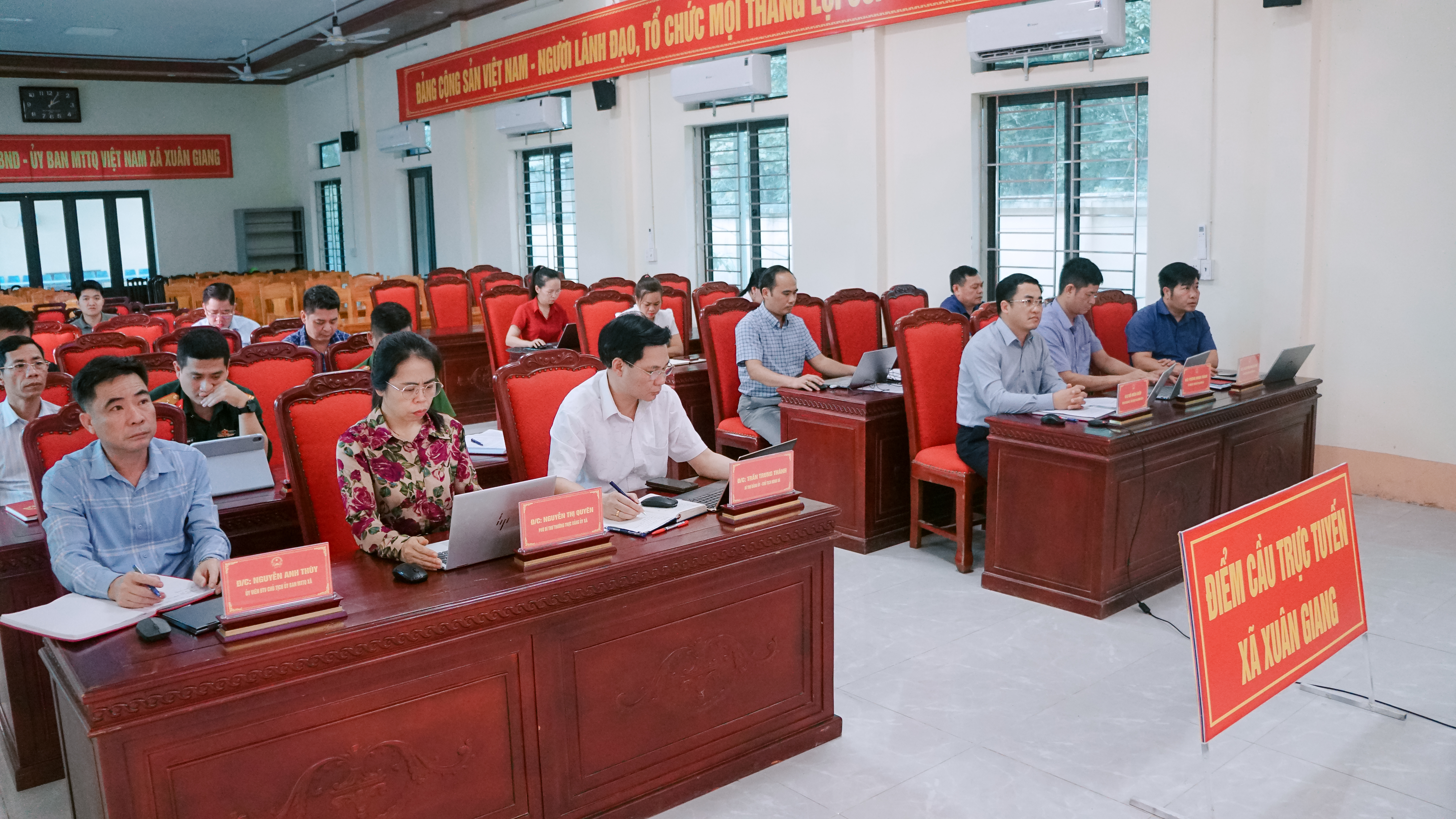 Tại điểm cầu xã Xuân Giang dự có Lãnh đạo Đảng ủy, HĐND - UBND, Ủy ban MTTQ xã, lãnh đạo các ban, ngành, đoàn thể và các cơ quan, đơn vị.