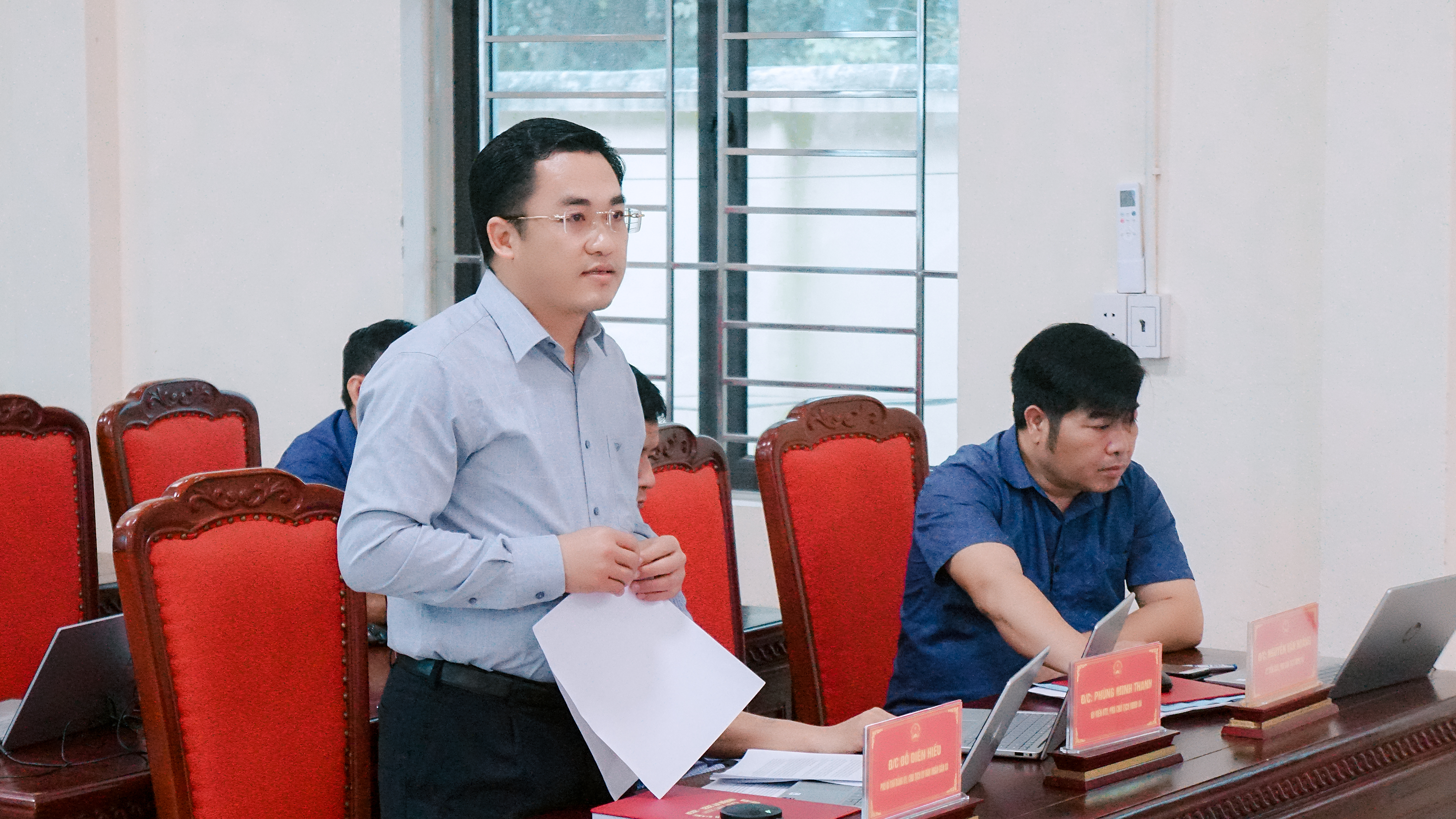 Đồng chí Đỗ Diên Hiếu, Phó Bí thư, Chủ tịch UBND xã phát biểu tại buổi làm việc.