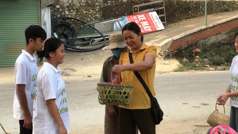 Ngoài ra, nhóm cũng thực hiện việc tuyên truyền đến các lớp học nhằm kêu gọi sự chung tay, ủng hộ của các bạn học sinh trong trường từ đó cùng nhau ký cam kết việc sử dụng và tái chế rác thải nhựa đúng cách. Để thiết thực lan toả thông điệp rộng hơn đến người dân trên địa bàn, các thành viên trong nhóm còn cùng phụ huynh đan những chiếc Làn bằng tre và thực hiện việc trao tặng cho một số người dân khi đi chợ tại xã. Từ những hành động tưởng chừng rất nhỏ nhưng đã góp phần tích cực trong việc thay đổi thói quen hằng ngày, xây dựng và hình thành ý thức hạn chế túi nilon, đồ nhựa dùng 1 lần. Đồng thời đã mang lại những thay đổi tích cực trong ý thức và thói quen của mỗi người, cùng lan toả hành động đẹp và thể hiện vai trò, trách nhiệm của từng người dân đối với công tác giữ gìn, bảo vệ môi trường xanh - sạch - đẹp.