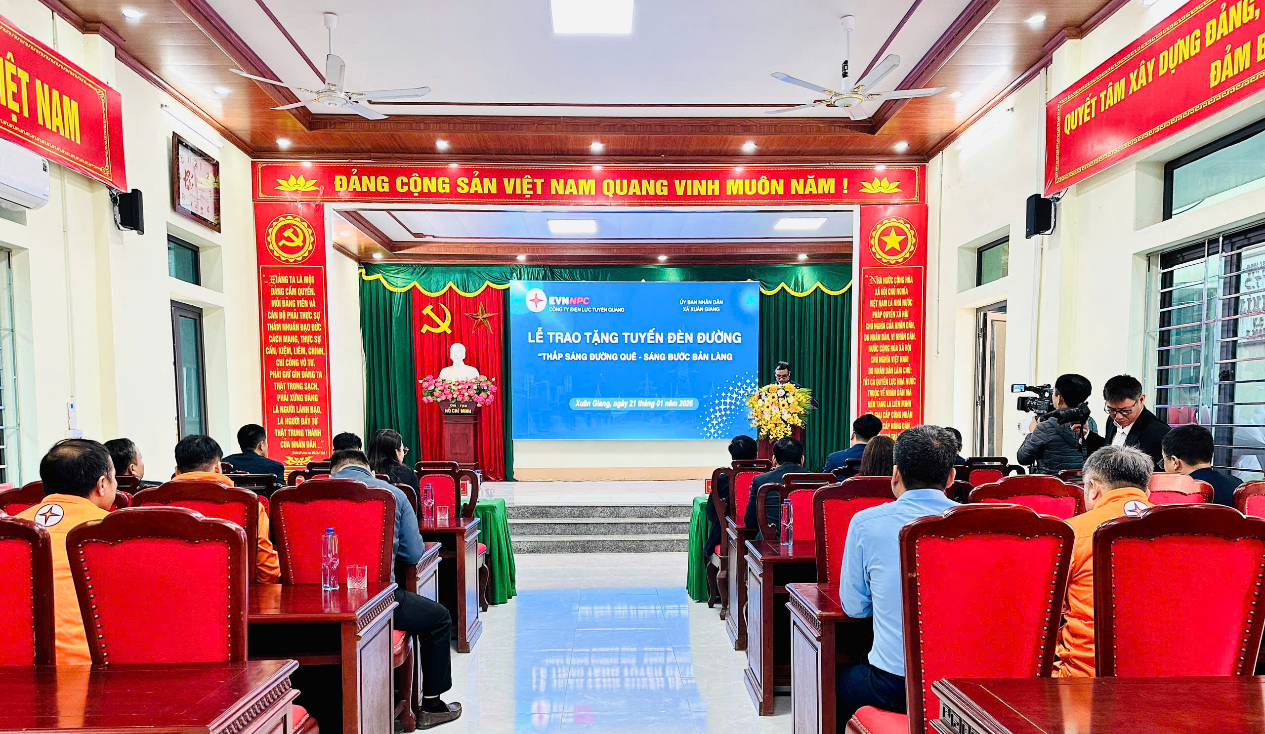 Đại diện Lãnh Đạo Công ty Điện lực Tuyên Quang trao tặng kinh phí xây dựng các tuyến đèn đường cho các xã Xuân Giang, Bằng Lang, Tiên Yên