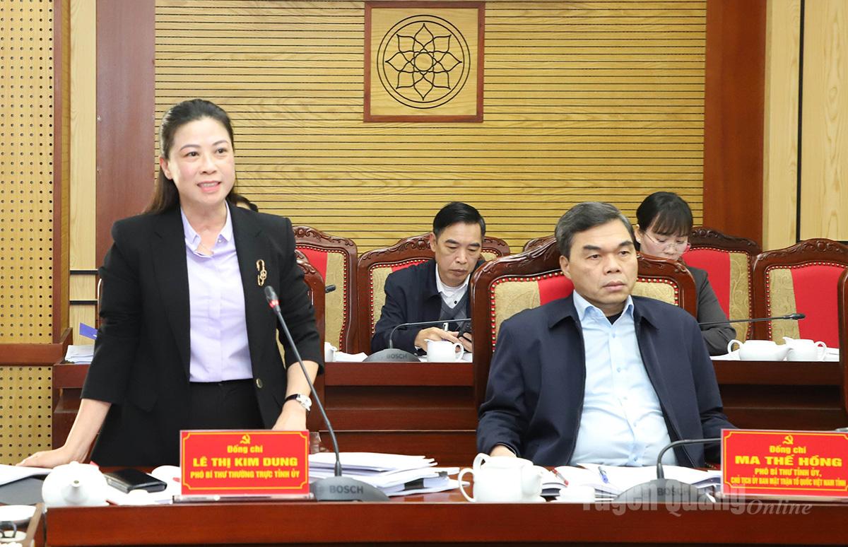 Phó Bí thư Thường trực Tỉnh ủy Lê Thị Kim Dung phát biểu tại phiên họp.