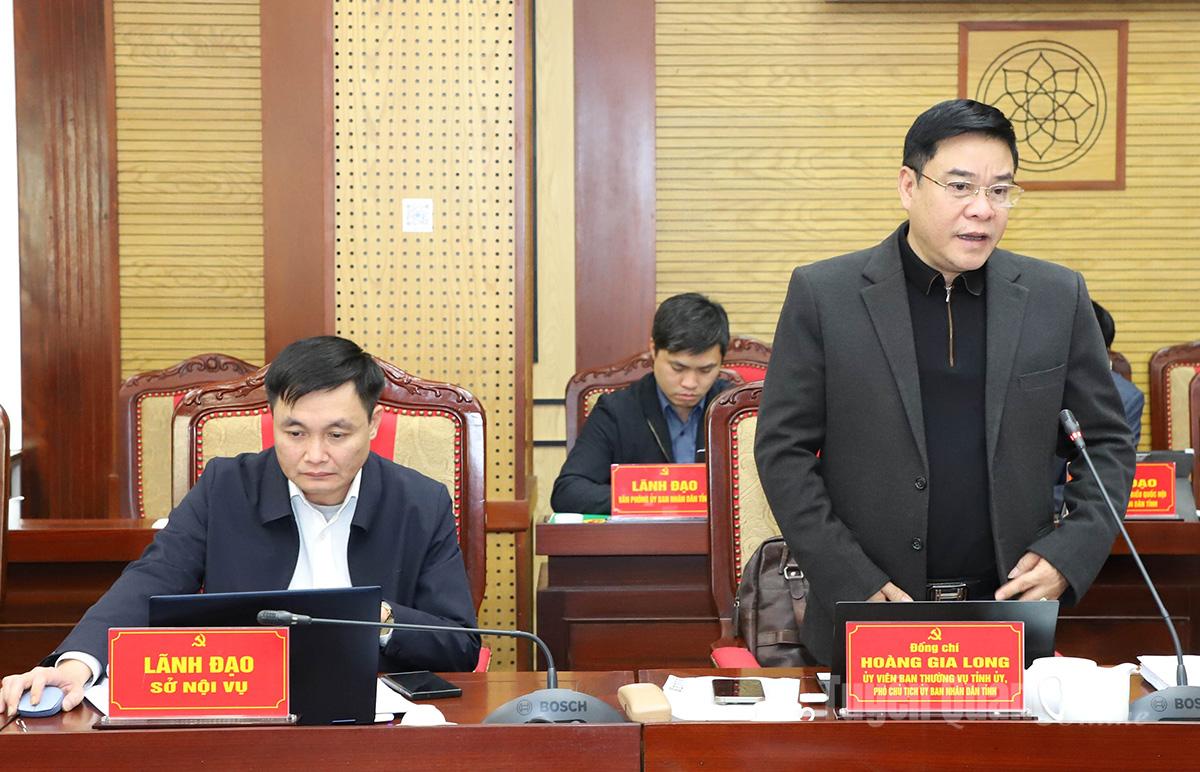 Phó Chủ tịch UBND tỉnh Hoàng Gia Long phát biểu tại phiên họp.