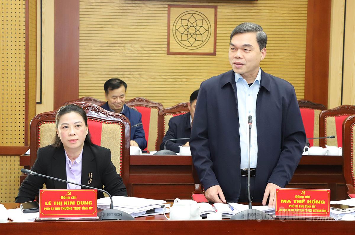 Phó Bí thư Tỉnh ủy, Chủ tịch Ủy ban MTTQ tỉnh Ma Thế Hồng phát biểu tại phiên họp.