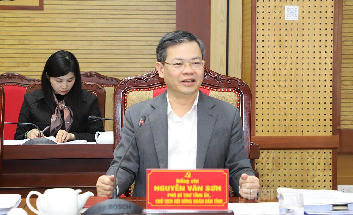 Phó Bí thư Tỉnh ủy, Chủ tịch HĐND tỉnh Nguyễn Văn Sơn phát biểu tại phiên họp.