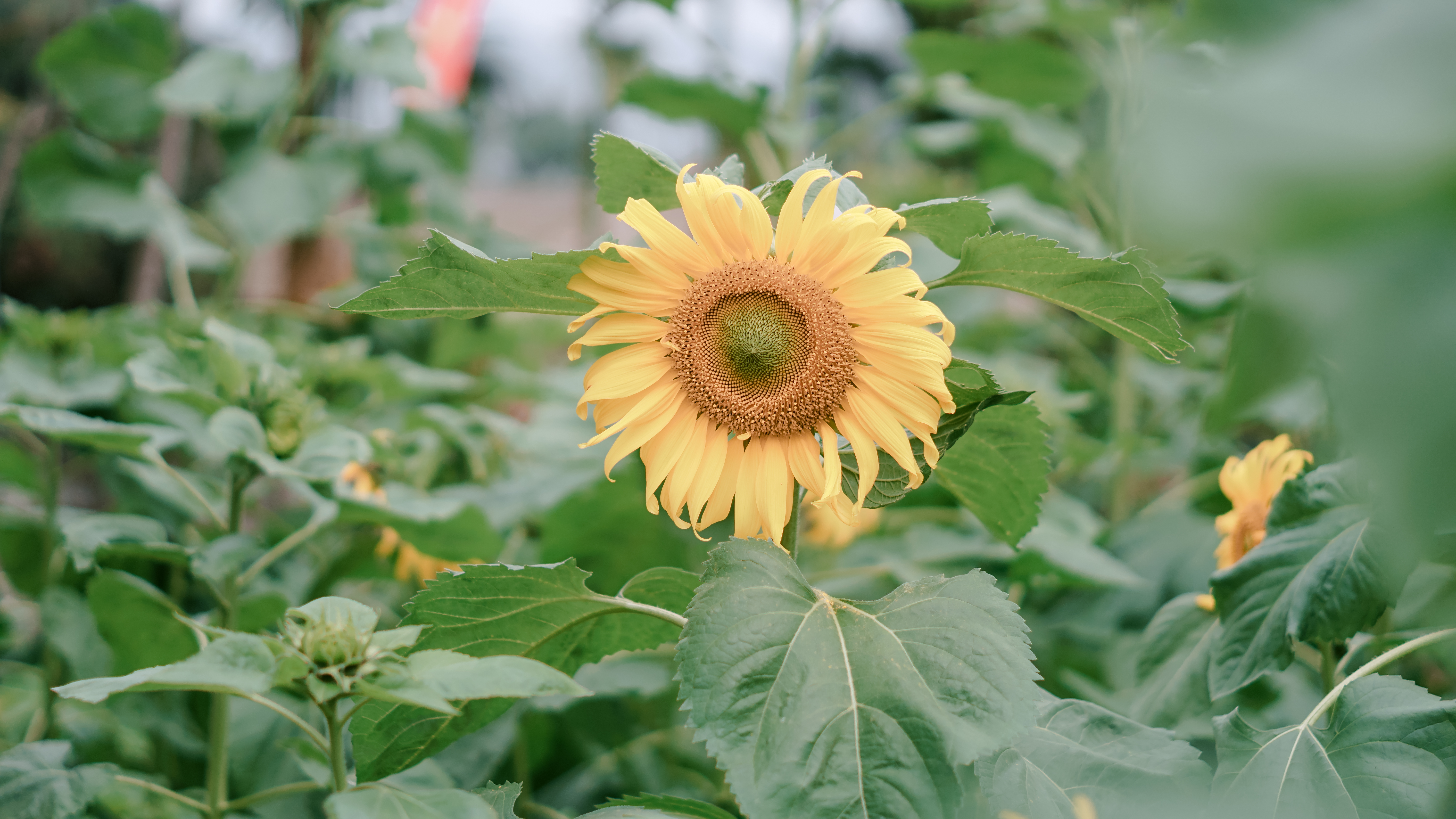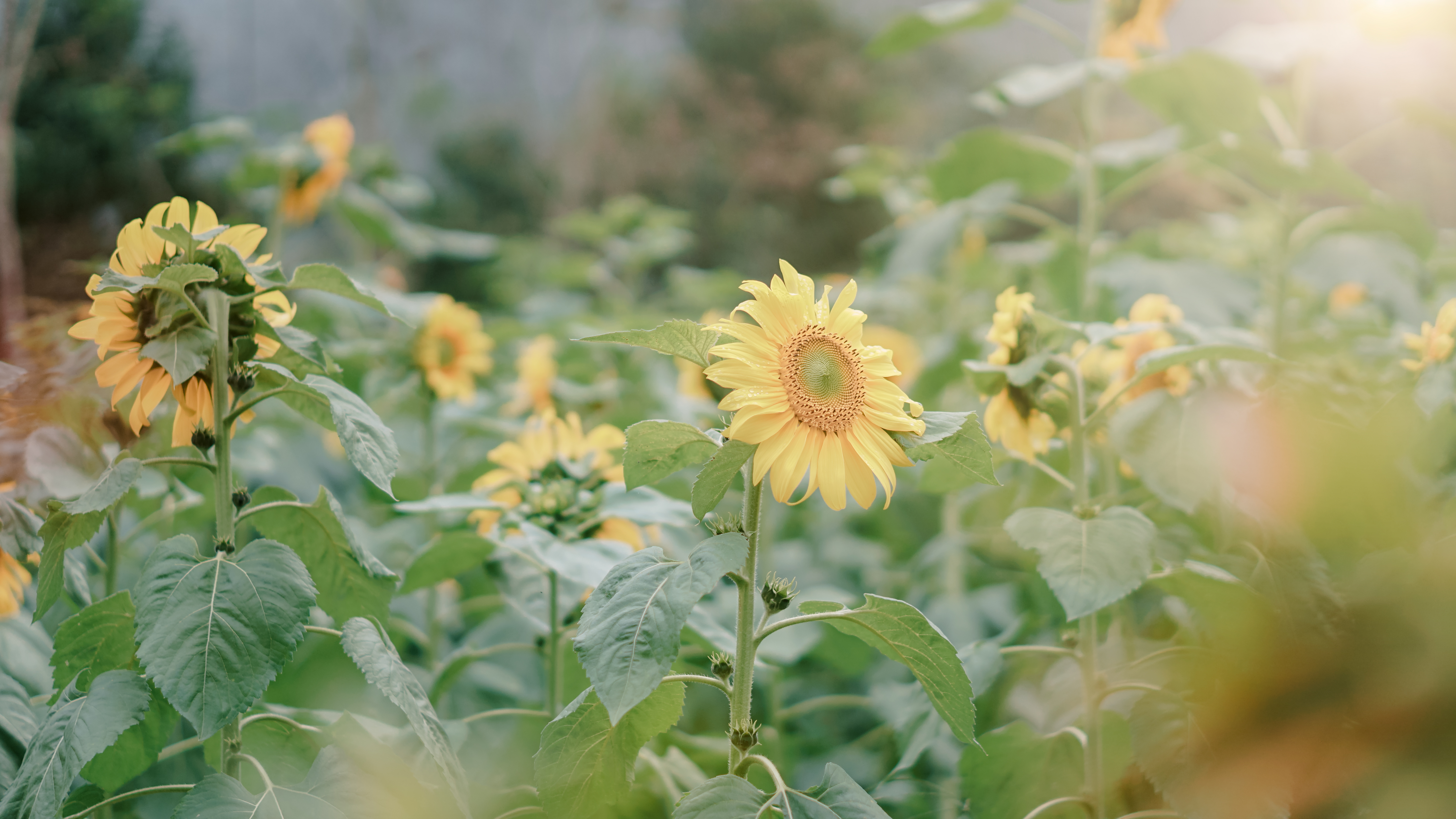 Những bông hoa hướng dương chớm nở đang vươn mình trước nắng sớm
