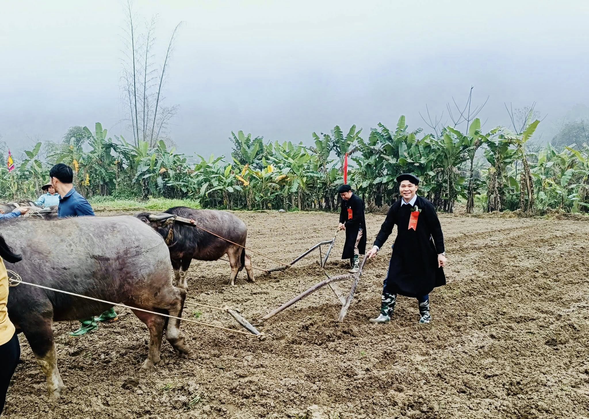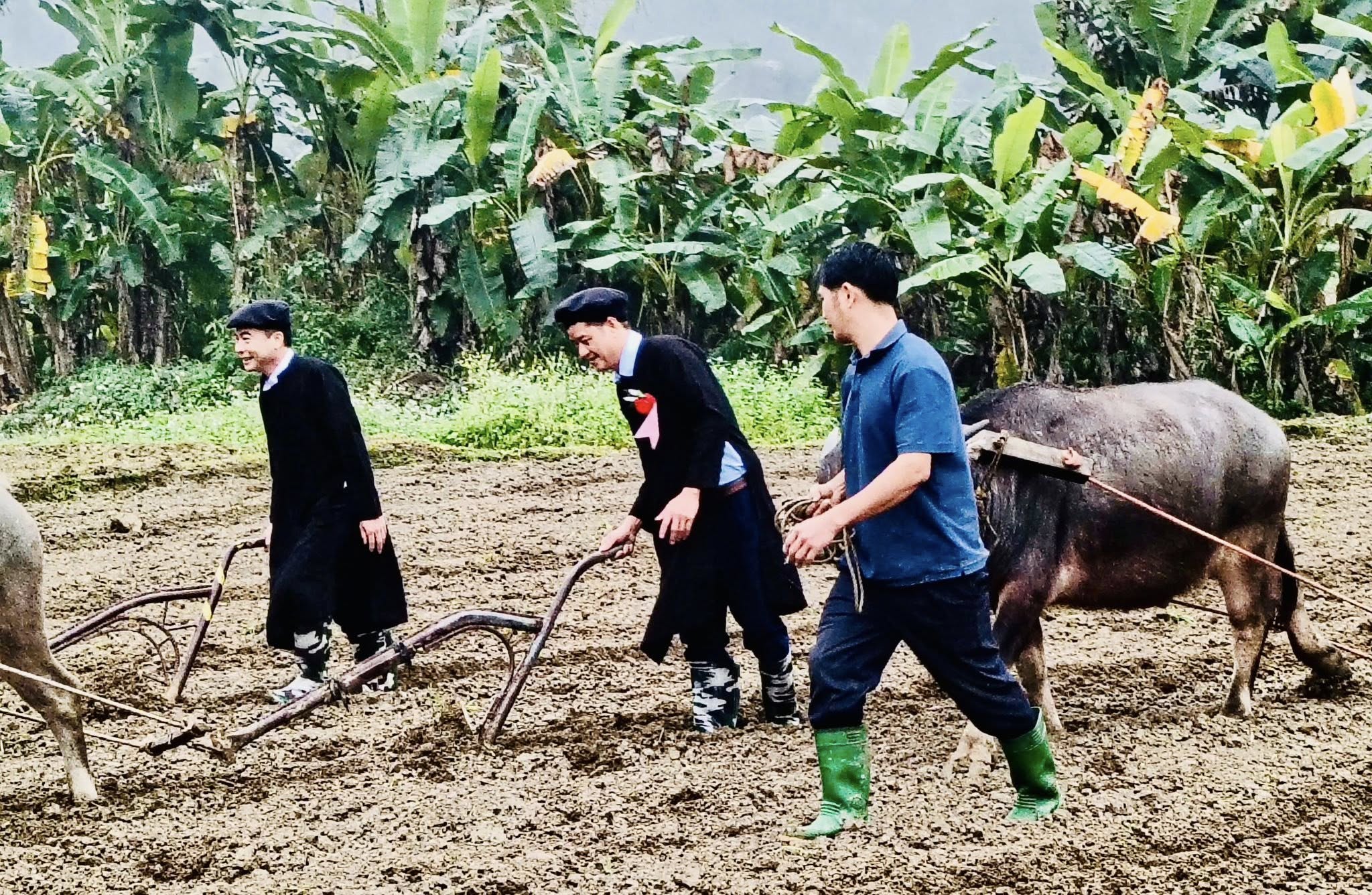 Lãnh đạo xã Xuân Giang thực hiện những đường cày đầu tiên trong năm mới