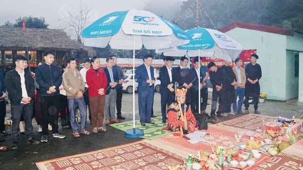 Nghi lễ dâng hương được tổ chức trang nghiêm, thể hiện lòng thành kính đối với thiên nhiên, tổ tiên và các bậc tiền nhân.