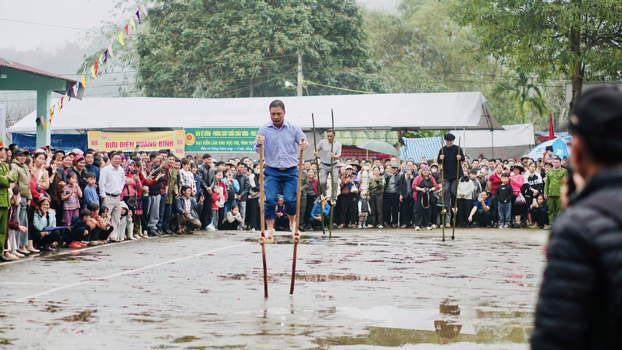 Phần hội diễn ra sôi nổi với nhiều trò chơi dân gian truyền thống như ném còn, đẩy gậy, cà kheo, kéo co... thu hút sự tham gia hào hứng của người dân và du khách, góp phần gìn giữ và lan tỏa giá trị văn hóa truyền thống.