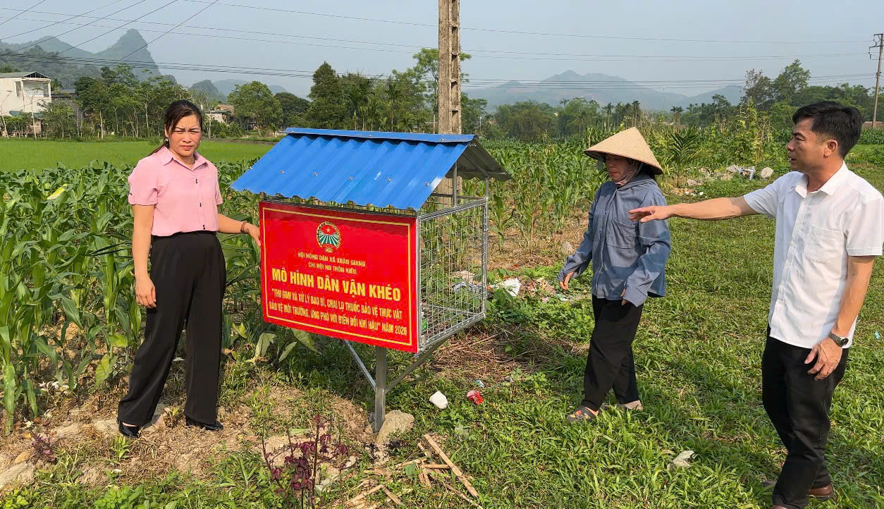 Tại khu vực trung tâm cánh đồng của hai thôn sẽ lắp đặt khung sắt cố định làm nơi thu gom tập trung, tạo điều kiện thuận lợi để hội viên và nhân dân bỏ rác đúng nơi quy định, hạn chế tình trạng vứt bừa bãi gây ô nhiễm môi trường.