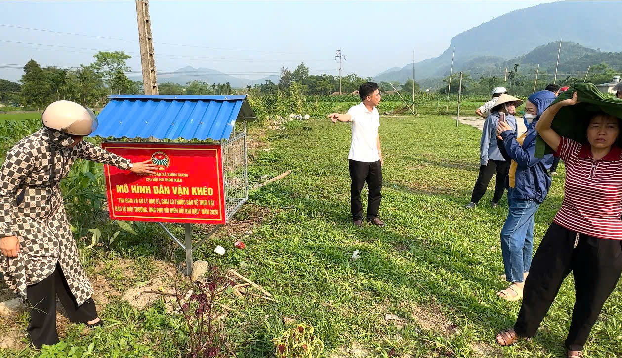 Mô hình được triển khai theo Nghị quyết Đại hội Đại biểu Nông dân xã lần thứ I và Kế hoạch công tác Hội năm 2026 của Hội Nông dân xã Xuân Giang. Theo đó, Hội Nông dân xã thành lập Ban quản lý mô hình tại hai chi hội, tổ chức thu gom bao bì, chai lọ thuốc bảo vệ thực vật sau sử dụng tại các cánh đồng, khu sản xuất và nơi công cộng, đưa về điểm tập kết để xử lý theo quy định.