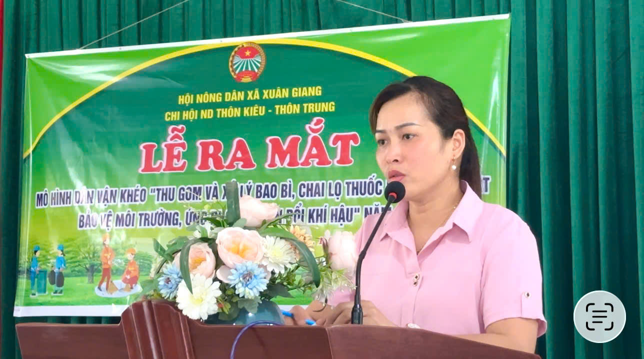 Đồng chí Nguyễn Thị Quyên - Phó Bí thư Thường trực Đảng ủy xã Xuân Giang tham dự Lễ ra mắt mô hình Dân vận khéo “Thu gom và xử lý bao bì, chai lọ thuốc bảo vệ thực vật, bảo vệ môi trường, ứng phó với biến đổi khí hậu”