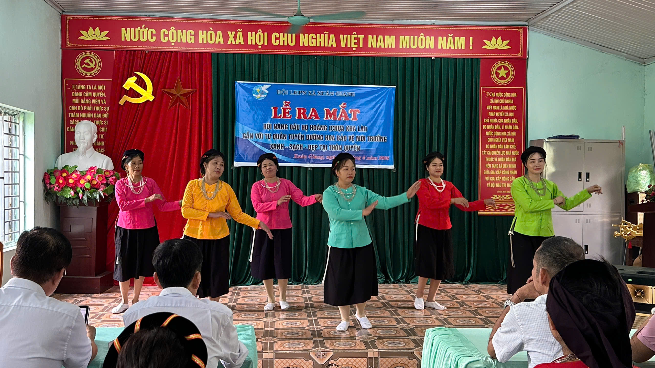 Mở đầu buổi lễ, các tiết mục văn nghệ do hội viên phụ nữ và nhân dân thôn Quyền biểu diễn đã tạo không khí vui tươi, phấn khởi, thể hiện tinh thần đoàn kết, gắn bó trong cộng đồng.