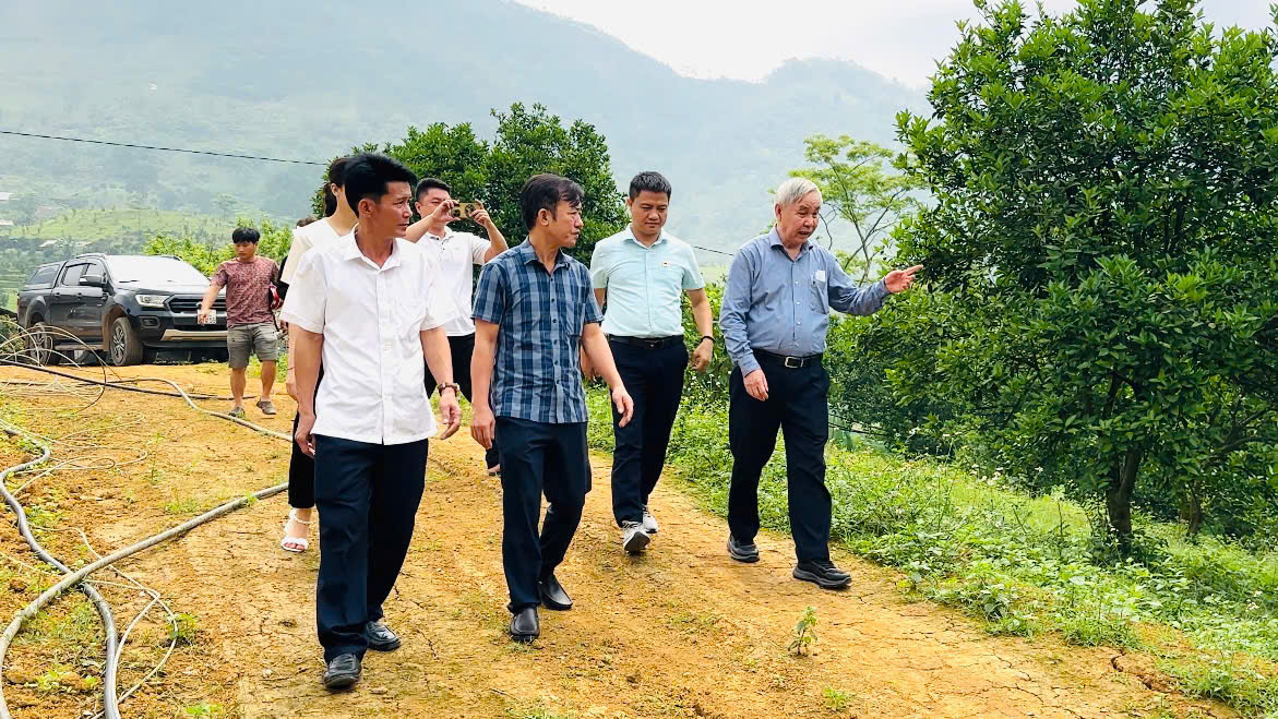 Ngay sau phần thảo luận tại hội trường, các đại biểu và hộ trồng cam đã di chuyển ra thực địa tại vườn cam của hộ Bà Thào Thị Sinh để tham quan, trao đổi trực tiếp và phân tích tình hình sinh trưởng của cây, qua đó làm rõ hơn những nội dung đã được trao đổi.