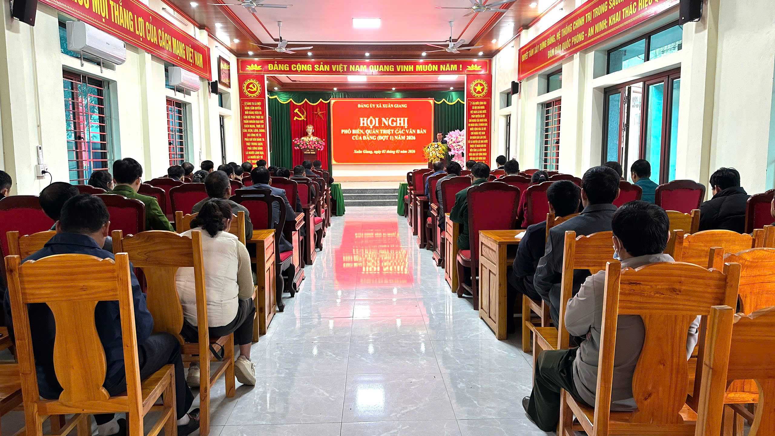 Không khí hội nghị diễn ra nghiêm túc, tập trung, các đại biểu theo dõi nội dung với tinh thần trách nhiệm cao. Nhiều cán bộ, đảng viên ghi chép đầy đủ, chủ động trao đổi, liên hệ thực tiễn tại chi bộ, thôn bản và cơ quan mình phụ trách. Thông qua hội nghị, Đảng ủy xã Xuân Giang tiếp tục nâng cao nhận thức, thống nhất tư tưởng và hành động trong toàn Đảng bộ, tạo nền tảng quan trọng để các văn bản của Đảng sớm được cụ thể hóa vào chương trình, kế hoạch công tác năm 2026, sát thực tiễn, đúng yêu cầu và hiệu quả.
