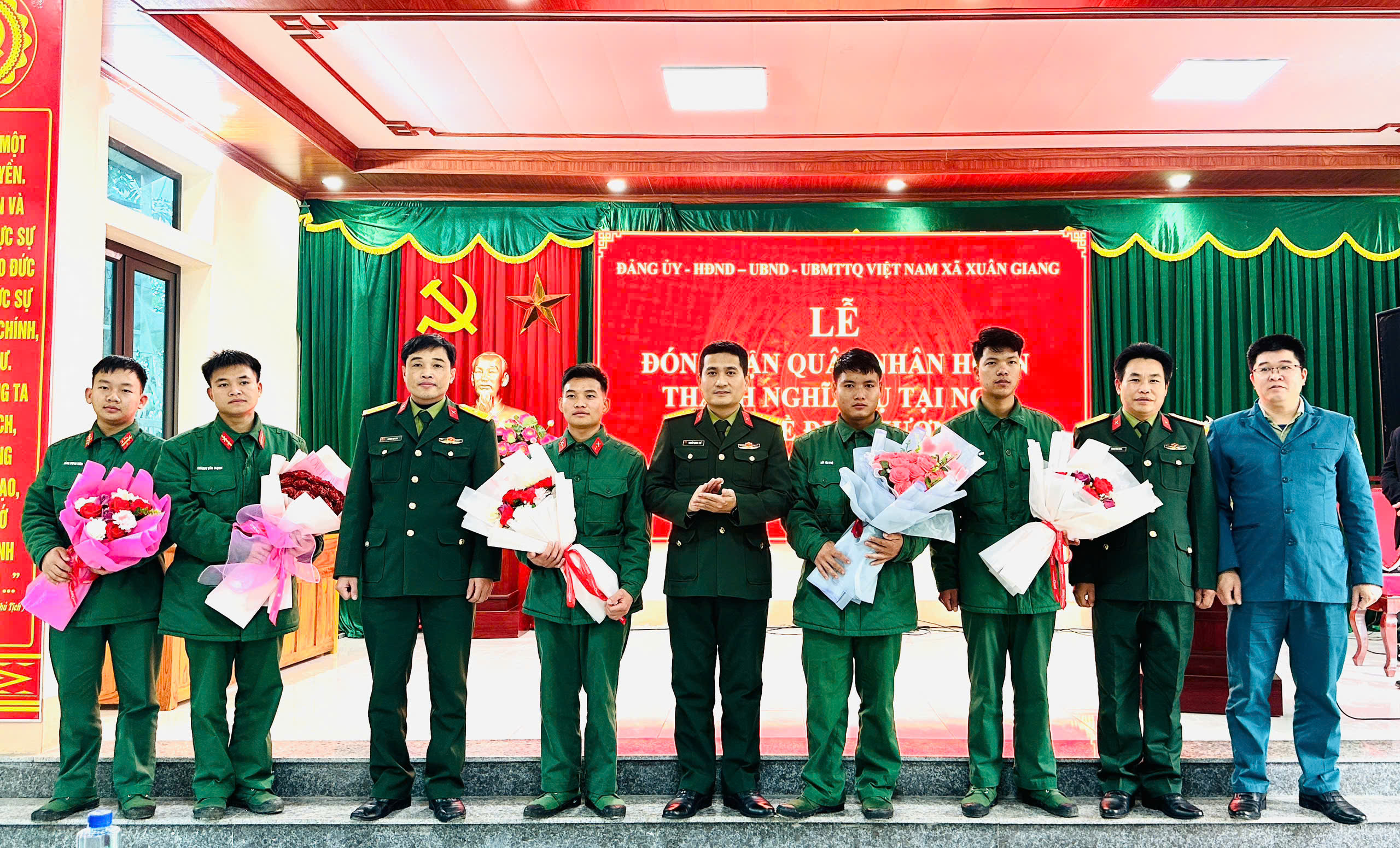 Lãnh đạo xã Xuân Giang tặng hoa và quà động viên các Quân nhân xuất ngũ