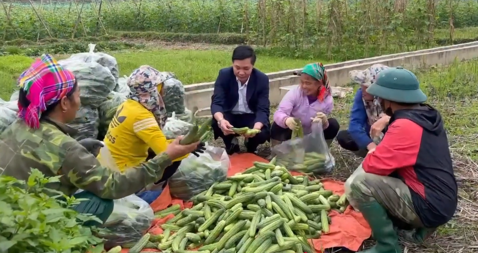 Lãnh đạo xã Xuân Giang trực tiếp xuống cùng nhân dân thu hoạch, kiểm tra chất lượng Dưa chuột vụ Đông năm 2025