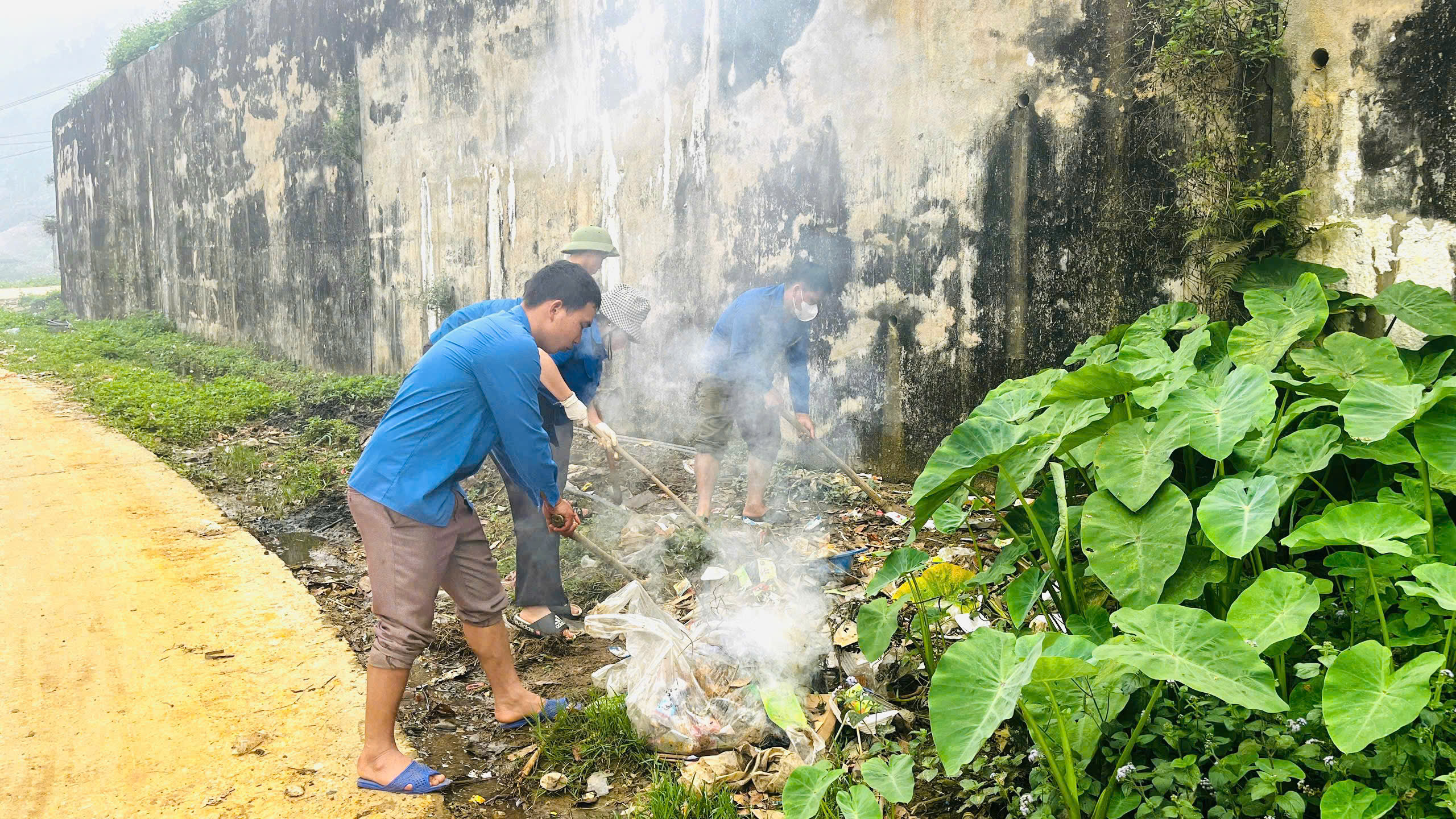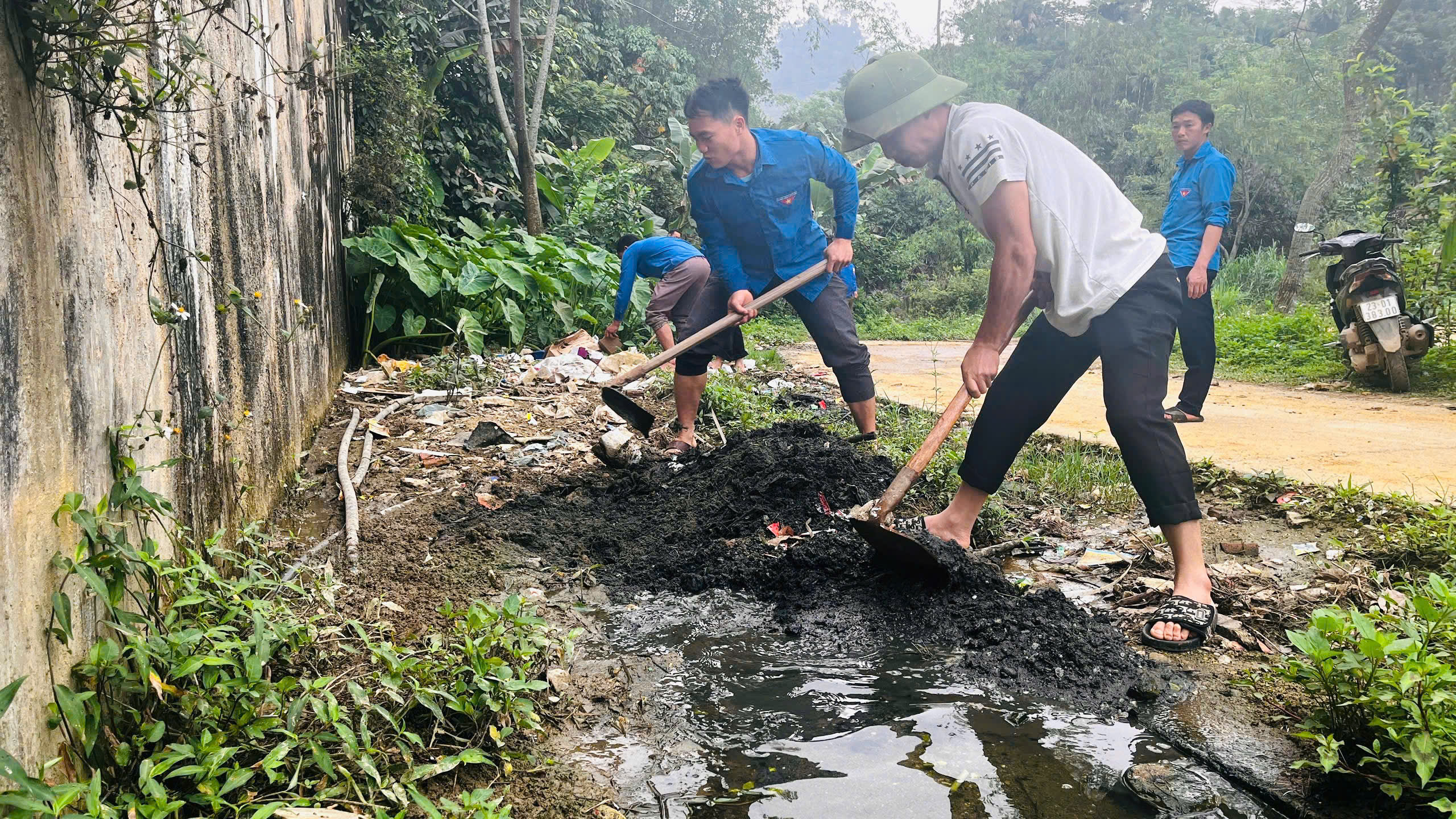 Bên cạnh đó, lực lượng đoàn viên còn tiến hành khơi thông rãnh thoát nước dọc tuyến đường đi thôn Lùng Vi. Hoạt động này góp phần đảm bảo vệ sinh môi trường, hạn chế tình trạng ứ đọng nước, nhất là trong mùa mưa sắp tới.