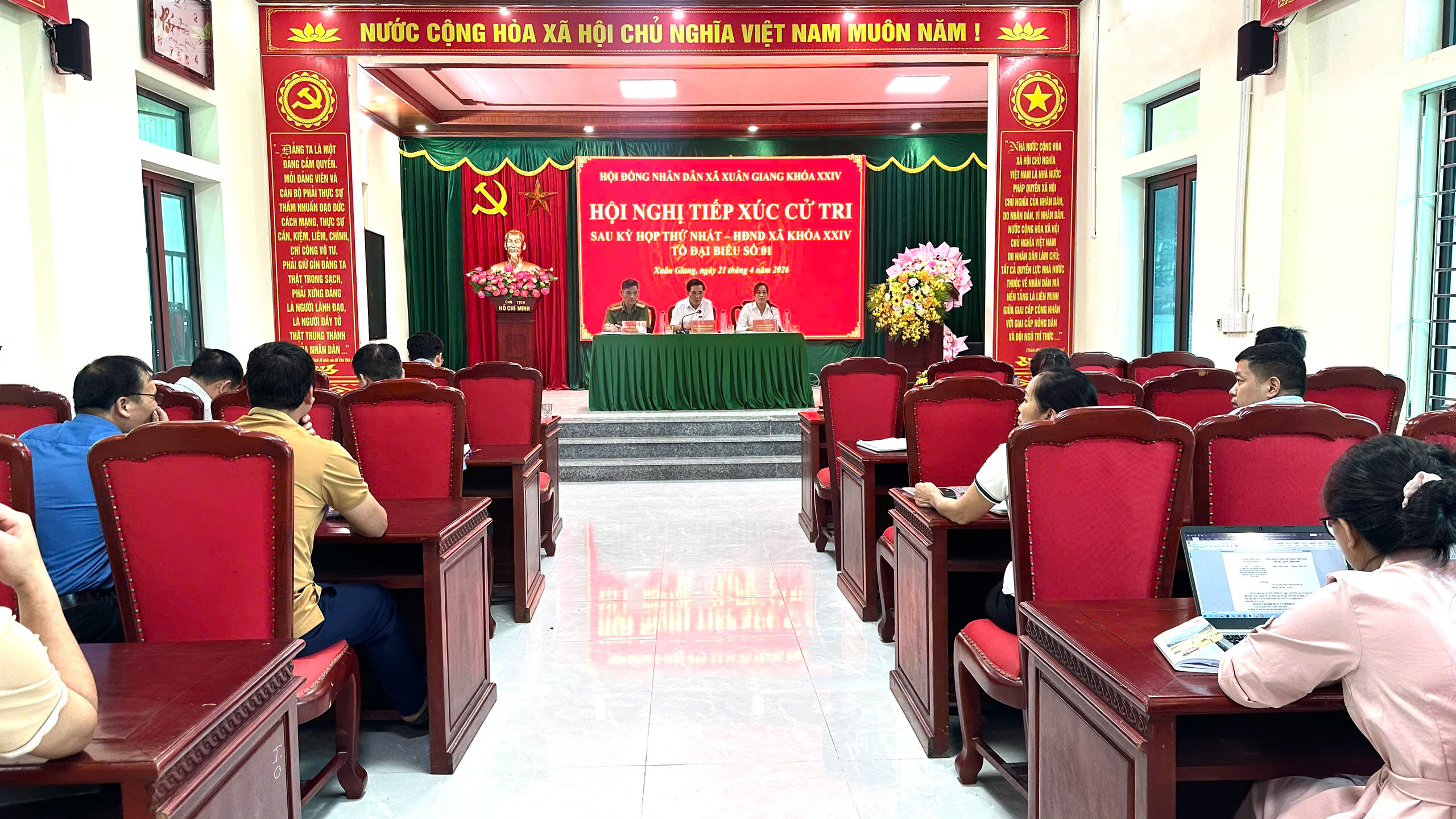 Chiều 21/4/2026, tại Hội trường UBND xã, thực hiện Kế hoạch của Thường trực HĐND xã Xuân Giang, Tổ đại biểu số 1 HĐND xã khóa XXIV tổ chức hội nghị tiếp xúc cử tri trực tiếp tại các thôn Chang, Tịnh và Mới.