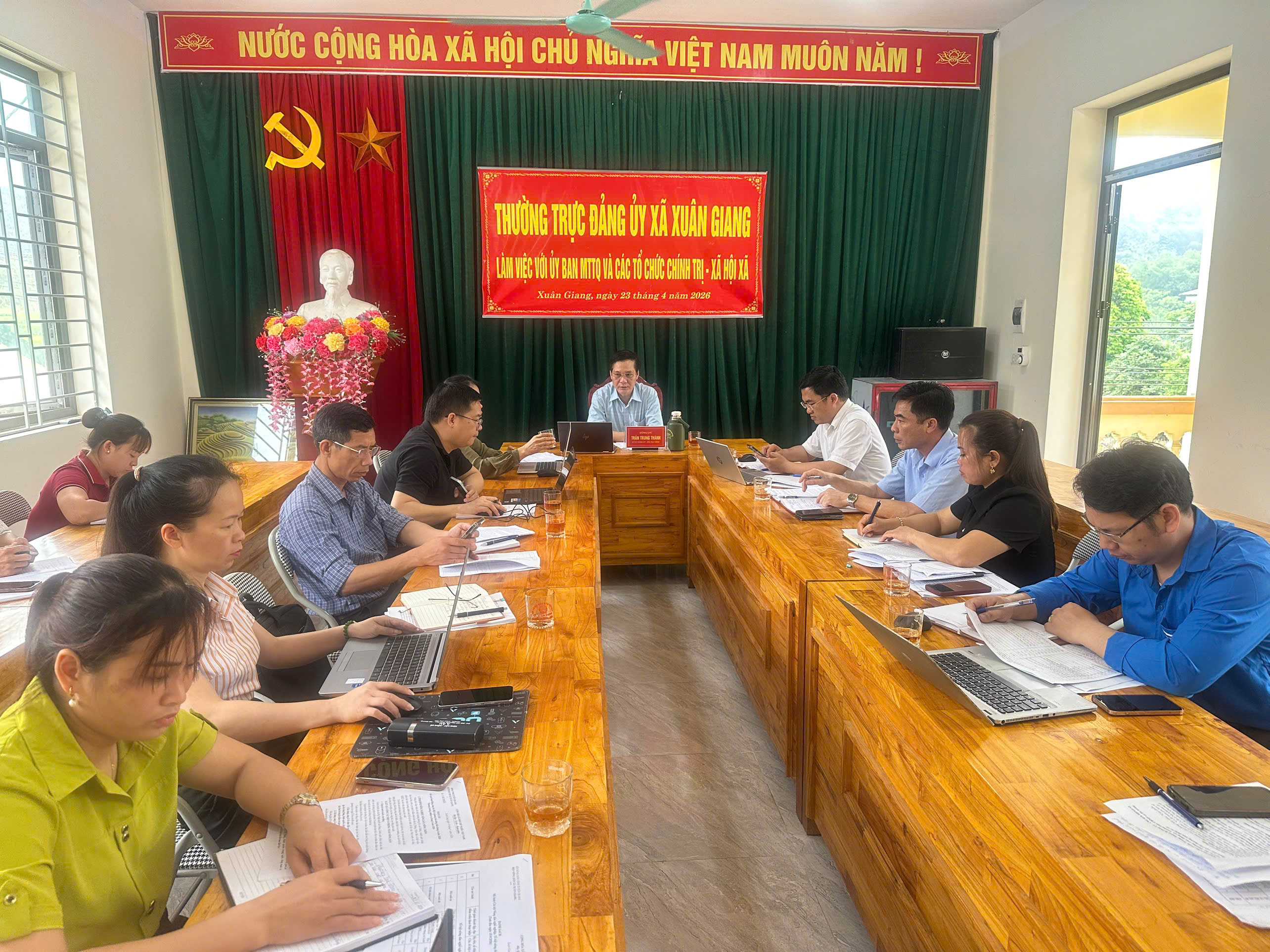 Ngày 22/04, Thường trực Hội đồng nhân dân (HĐND) xã Xuân Giang đã tổ chức Hội nghị liên tịch nhằm thống nhất nội dung, chương trình và thời gian tổ chức Kỳ họp thứ hai (kỳ họp chuyên đề) HĐND xã khóa XXIV, nhiệm kỳ 2026-2031. Đồng chí Trần Trung Thành, Bí thư Đảng ủy, Chủ tịch HĐND xã chủ trì hội nghị.