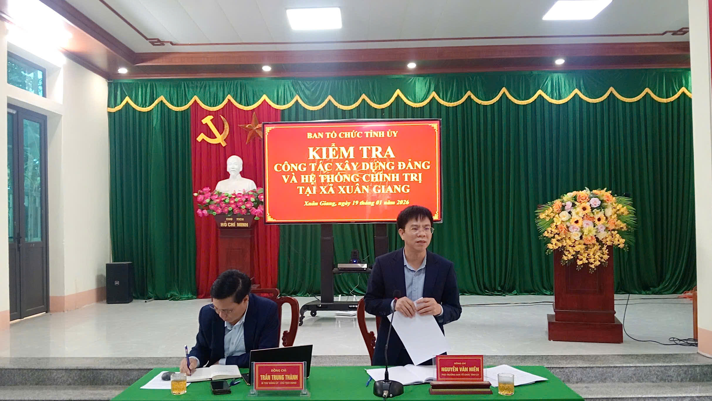 Sáng 19/01/2026, tại Hội trường xã Xuân Giang (Tuyên Quang), Đoàn công tác của Ban Tổ chức Tỉnh ủy Tuyên Quang do đồng chí Nguyễn Văn Hiền - Phó Trưởng ban Tổ chức Tỉnh ủy làm Trưởng đoàn; tham gia đoàn có đại diện Phòng Tổ chức Đảng và Đảng viên; Phòng Bảo vệ Chính trị Nội bộ Ban Tổ chức Tỉnh ủy.