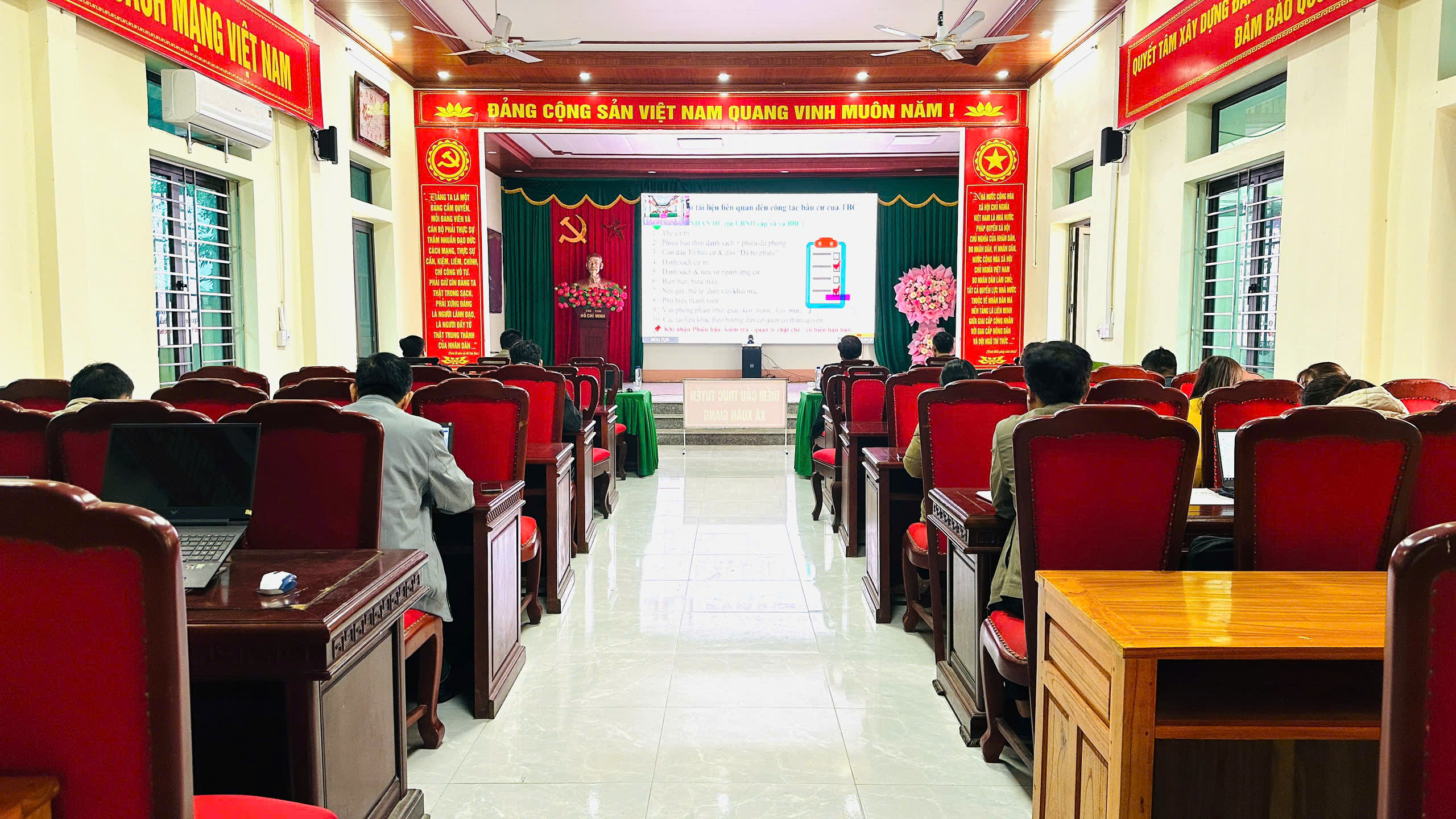 Sáng 04/02/2026, tại Hội trường UBND xã Xuân Giang(Tuyên Quang) cán bộ, công chức và các lực lượng phụ trách bầu cử trên địa bàn đã tham dự Hội nghị trực tuyến toàn quốc hướng dẫn nghiệp vụ công tác bầu cử đại biểu Quốc hội khóa XVI và đại biểu HĐND các cấp nhiệm kỳ 2026–2031