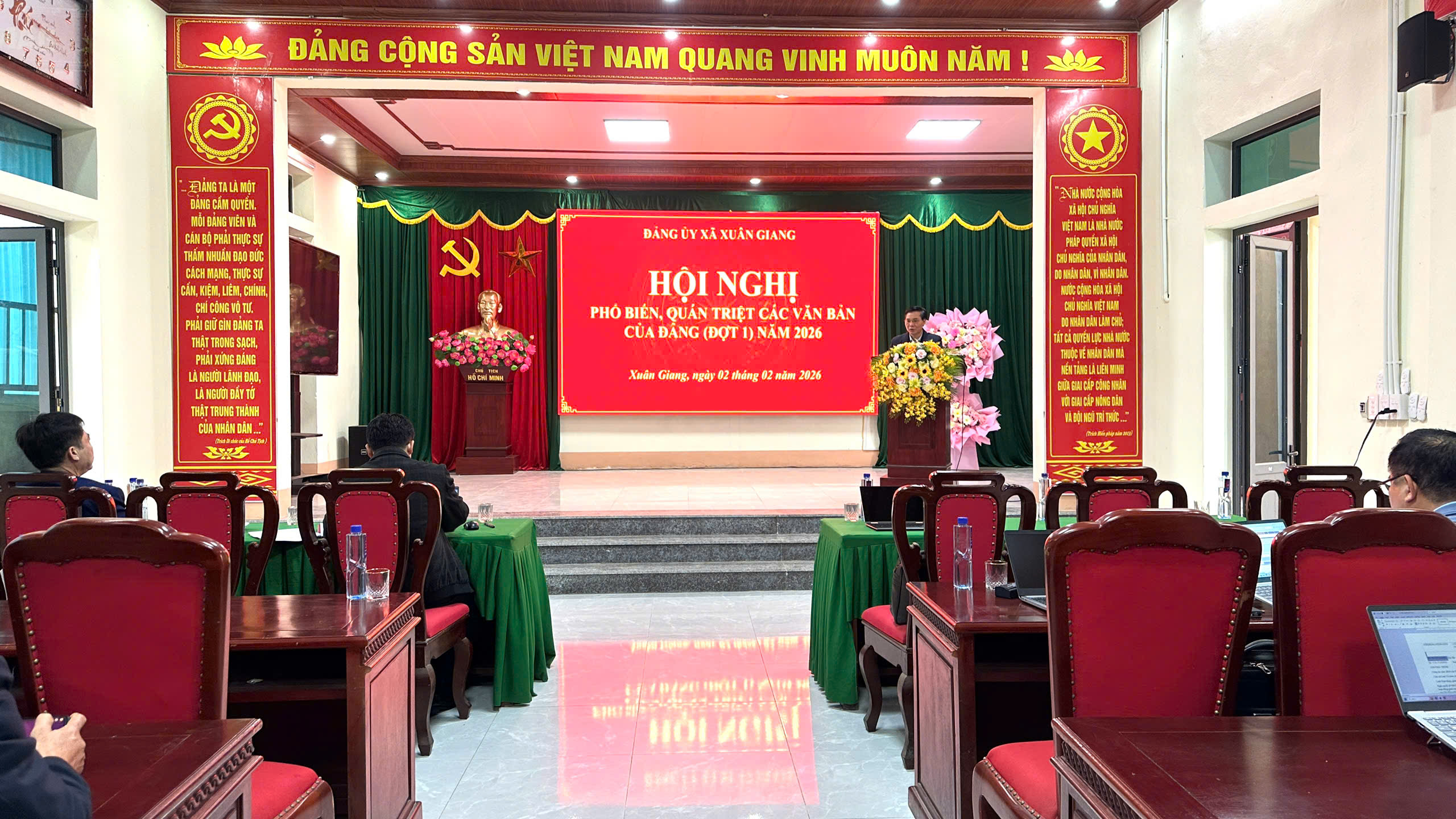 Sáng ngày 02/02/2026, Đảng ủy xã Xuân Giang tổ chức Hội nghị phổ biến, quán triệt các văn bản của Đảng (đợt 1 năm 2026). Hội nghị được triển khai đồng thời tại hai điểm, bảo đảm thuận lợi cho cán bộ, đảng viên tham dự, phù hợp với điều kiện thực tiễn của địa phương sau sắp xếp, sáp nhập.