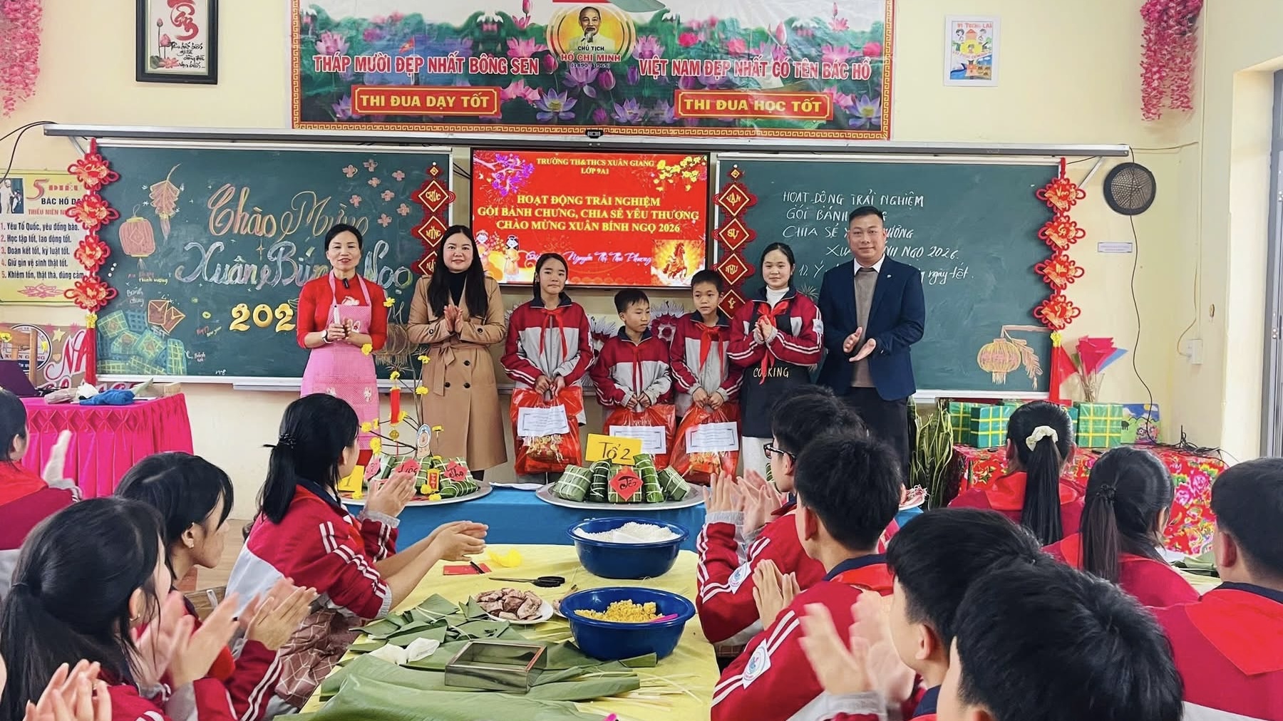 Hoạt động trải nghiệm – hướng nghiệp với chủ đề “Gói bánh chưng Tết – Chia sẻ yêu thương” tại Trường TH&THCS Xuân Giang, xã Xuân Giang, Tỉnh Tuyên Quang.